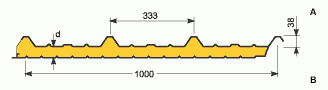 | Jelölés (ASD) | Profil séma (mm) | PUR vastagság (mm) | Lemez vastagság (mm) | Hő- átbocsájtás tényező U (W/m2K) | Max. Hossz (m) |